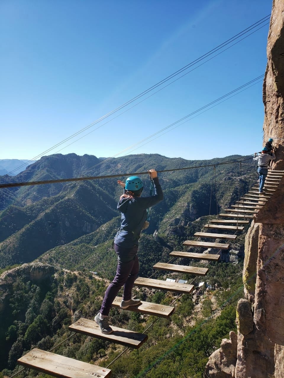 When you think of Mexico do you think of steep, red canyons and scenic train rides through the mountains? Well, I do when I think about Chihuahua and its Copper Canyon. This is a part of Mexico that any self-respecting nature-lover would drool over. Chihuahua might be more famous for the dog breed that originated there, but it’s also Mexico’s largest estado and has a vast number of amazing landscapes and exciting activities. Between riding the infamous El Chepe train through the mountains, rappelling down one of the rock faces of the canyon, and standing awestruck at the base of one of Mexico’s tallest waterfalls, I couldn’t believe I had never heard of any of these places prior to living in Mexico!