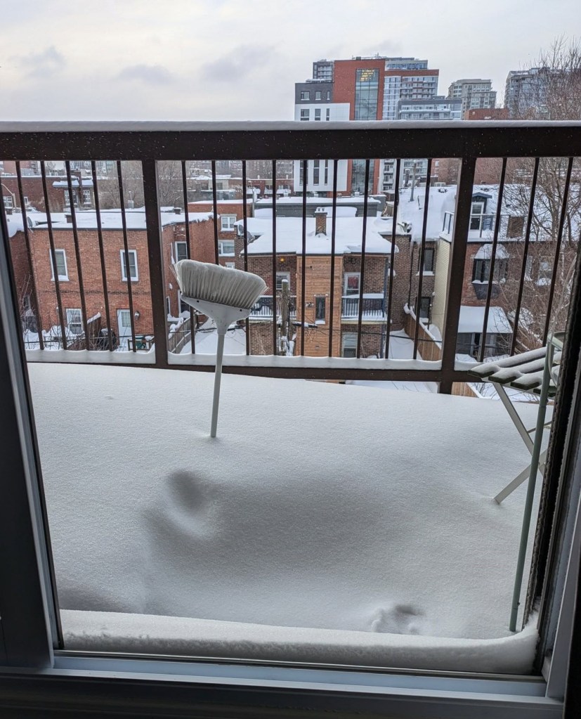 We had our suspicions about the weather being more extreme in Québec. I mean, we are further north and east, both of which usually get hit pretty hard, but we kind of thought we’d need a few months before we noticed if it was really much different. Turns out, we didn’t need long at all. The added humidity and constant wind means that the same temperature feels quite a bit colder. We keep seeing temperatures slightly above freezing, and then step outside only to realize that the real feel is significantly lower. Damp, windy cold is definitely tougher.