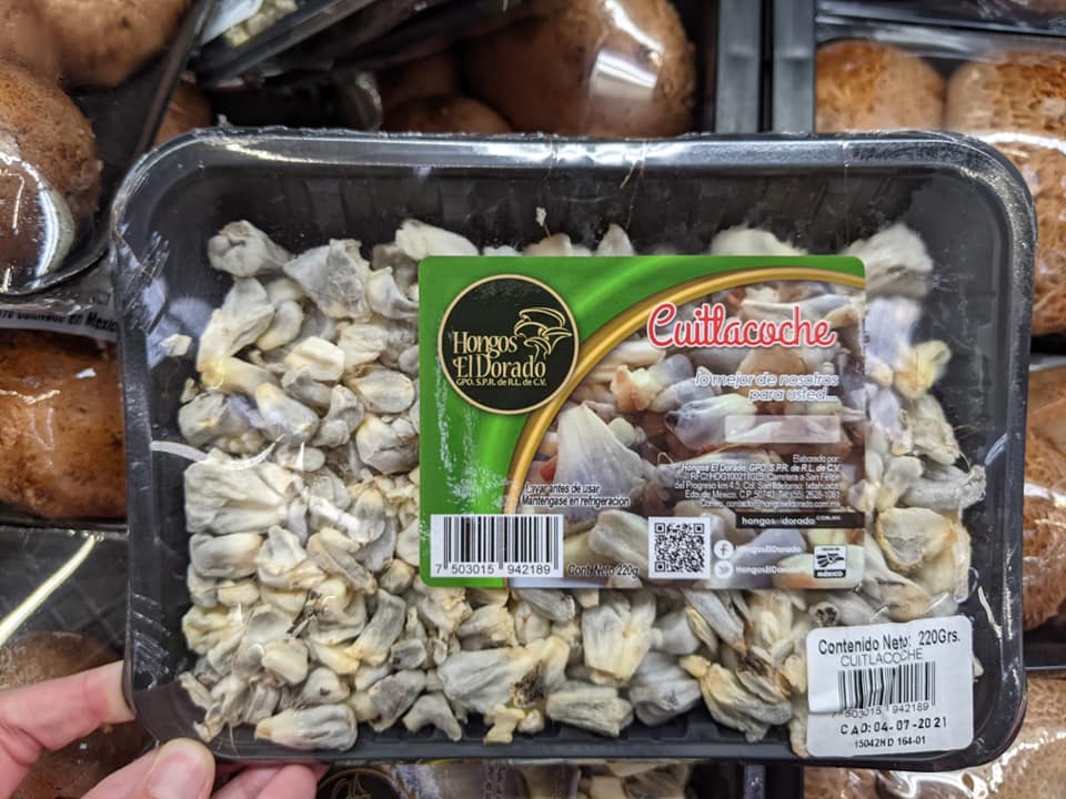 Time for another round of fungi! Huitlacoche is a fungus we encountered regularly while living in Mexico. In fact, it’s so common, they sell it at Walmart! Huitlacoche has a lot of similarities to mushrooms, and you’ll typically find it in the same sorts of dishes: soups, omelets, tacos, etc. Again, I can’t help but think about branding here because a lot of gringos shy away from huitlacoche, but maybe that has less to do with the taste and more to do with the fact that it’s called “corn smut” in English. Or maybe it’s the bulbous-y, blueish-green lobes that turn people off…I guess we’ll never know.