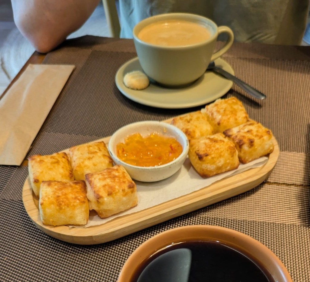 The newest addition to our interesting foods list, dadinhos (or cubes) of tapioca is a snack we recently tried in Brazil. Crispy on the outside, chewy on the inside, often made with added cheese and served with a tangy sauce, they were nothing like the only tapioca dish I had for comparison (tapioca pudding, obviously). In fact, without Google, I’d have been really hard-pressed to tell you what exactly was inside the dadinhos we scarfed down with our afternoon coffee. All I knew was that they tasted good, and that was enough for me!