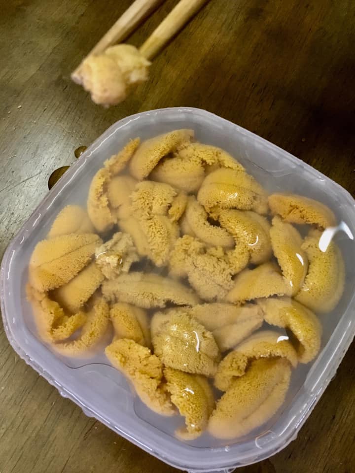 One of the rarer things we’ve eaten would probably be uni (or sea urchin). It’s a little expensive because, I mean, have you seen the creatures? It doesn’t look there’s much “meat” to be harvested there. But that being said, of all the things I’ve ever eaten from the ocean, for me, this was by far the least offensive. There is absolutely no seafood flavor whatsoever. It’s really more like buttery sea water, which really pushes this one beyond interesting and into bizarre. Sometimes I wonder about the person who first discovered that there were tiny, squishy, edible pieces inside those spiky balls at the bottom of the ocean…