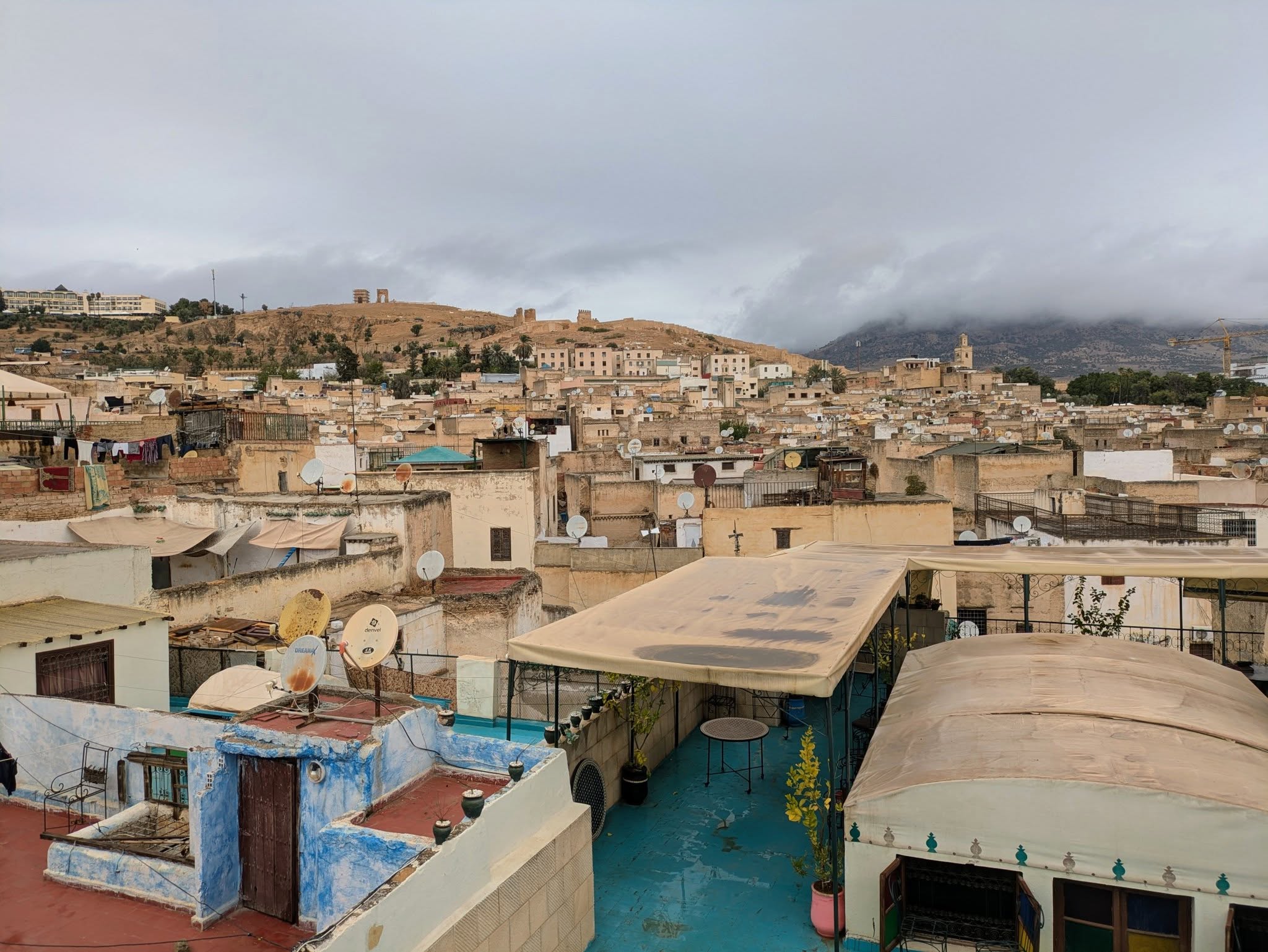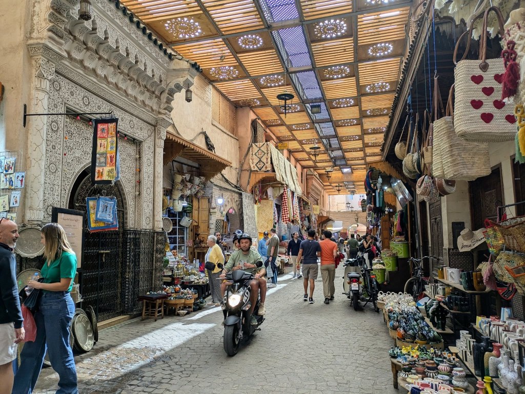 Walking around the medina was chaotic in the absolute best way. There are souvenirs, snacks, businesses, and historic sites all crammed into the narrowest of spaces, not to mention all the people shopping, taking photos, transporting goods, etc. Unfortunately, Google Maps is almost no help in navigating since the vast majority of the streets in the medina are too small to be on the map. For that reason and so many others, walking around Fes felt a lot like traveling back in time. Of course, eventually you’d spot some stainless-steel water bottles or personalized power banks and instantly be back in the 2020s.