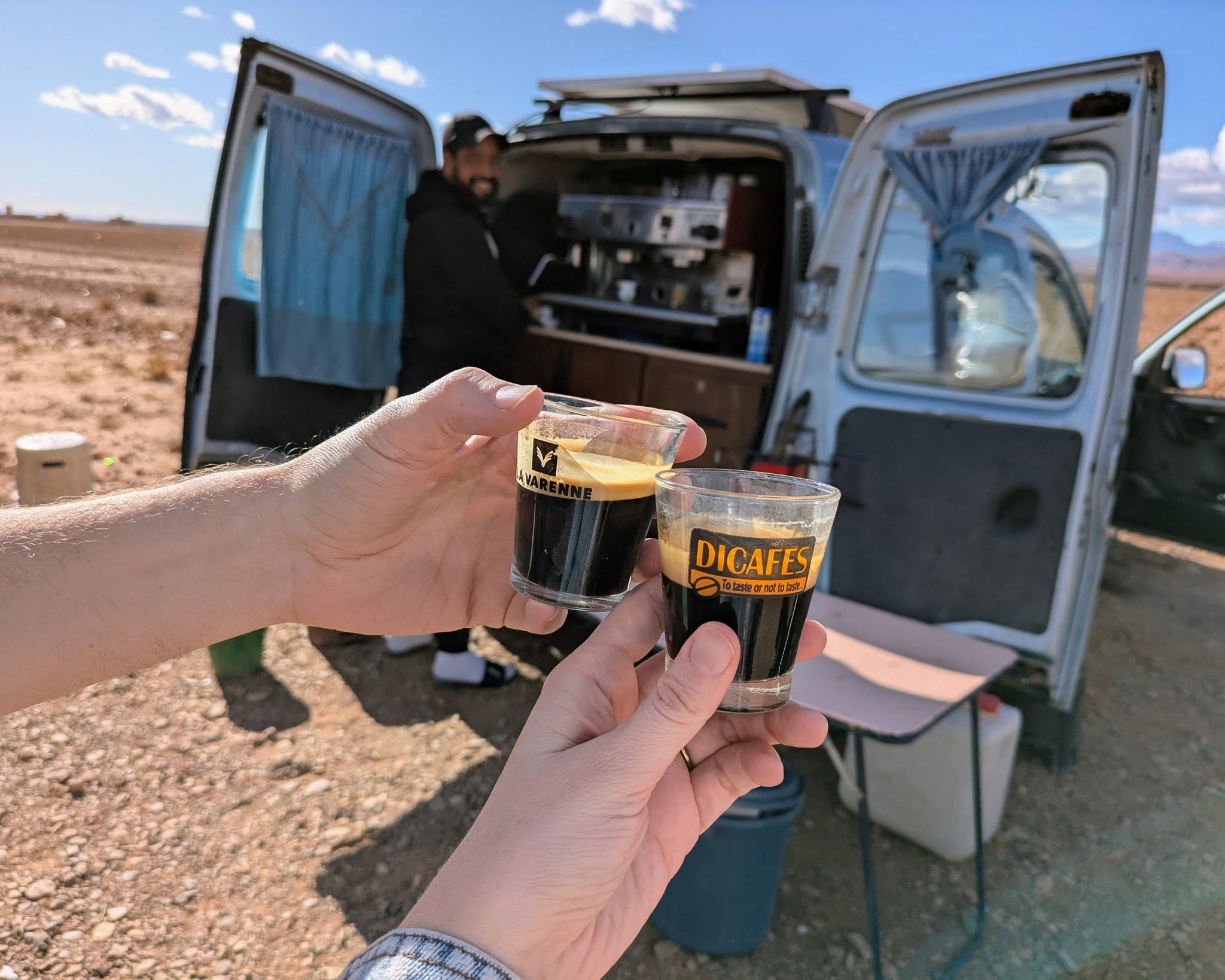 It takes 7 hours to get to Merzouga (and the Chebbi dunes) from Fes and another 9 hours to get to Marrakesh, so we covered a lot of ground and a lot of points of interest, including some of my favorite: the monkeys in Ifrane, the Todgha gorge, the random espresso bar van in the middle of nowhere, and the ancient city of Aït Benhaddou. But of course, the highlight of this adventure was our time in the dunes. Riding the camels, watching the sunset and sunrise, sandboarding, a bonfire, drinks shared with new friends, star gazing – it was one of those travel experiences that seems totally unreal, and I can’t recommend it enough.